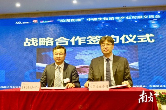 11月26日,“松湖藥港中德生物技術(shù)產(chǎn)業(yè)對接交流會”在松山湖高新區(qū)舉行。交流會上,東莞市政府發(fā)展生物產(chǎn)業(yè)的平臺公司東莞生物技術(shù)產(chǎn)業(yè)發(fā)展有限公司,與德國北威州產(chǎn)業(yè)聯(lián)盟簽訂戰(zhàn)略合作協(xié)議,搭建起東莞與北..